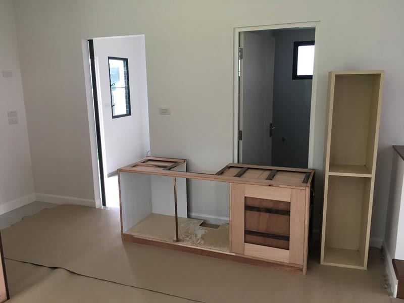13. เพียงพอทำเสร็จช่างยังถามหาไฟในห้องครัวว่าพอเพียงหรือเปล่า เนื่องจากว่าตัวชั้นจะบังแสงสว่างจากข้างบน เสนอแนะให้ติดไฟแอบซ่อนทางใต้ชั้นตอนทำอาหารเพิ่มเติมนิดเดียว แต่ว่าคงจะได้ใช้งานคุ้มกว่า