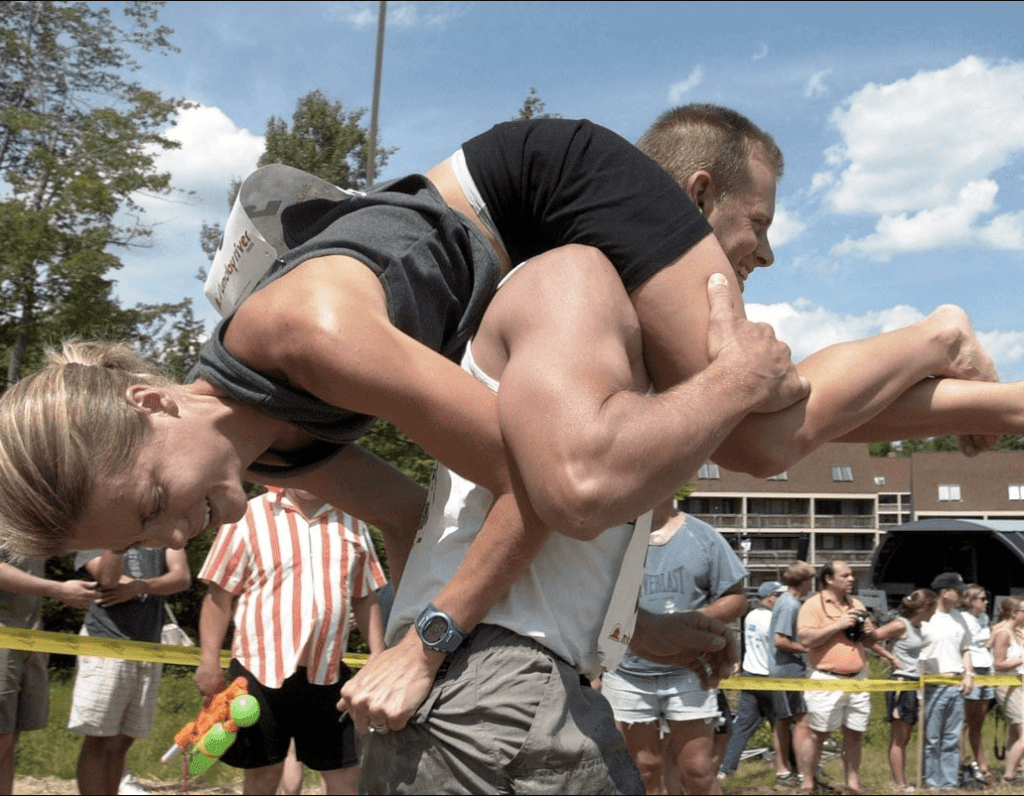 นี่เป็นการประลองที่พิสูจน์รักจริงของเหล่าคนรักทั้งโลกที่เริ่มแข่งกันอย่างจริงจังมาตั้งแต่ปี 1992 กฎของกีฬา “แบกภรรยา” เขียนเอาไว้ว่าผู้เข้าชิงหญิงที่จะเป็นข้างถูกแบกนั้นควรจะมีน้ำหนัก 50 โลขึ้นไป หรือถ้าข้างหญิงเข้มแข็งจริงก็สามารถเลือกที่จะแบกข้างชายแทนก็ได้ (โหดสุด)